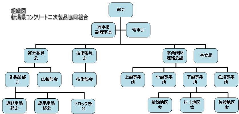 新潟県コンクリート二次製品協同組合は、組合員の相互扶助の精神に基づき必要な共同事業を行い、もって自主的な経済活動を促進し、かつ、その経済的地位の向上を図ることを目的に設立された、中小企業等協同組合法に基づく事業協同組合です。